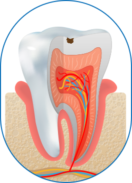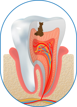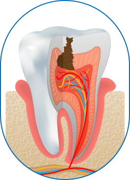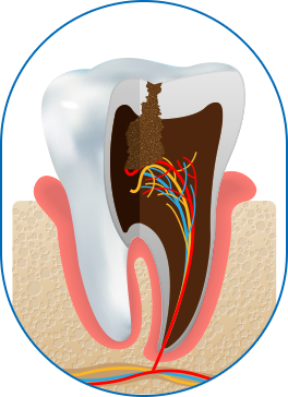 치아 뿌리와 잇몸뼈 치아 내부의 신경조직까지 충치가 도달한 단계로